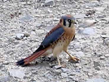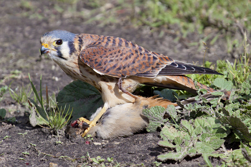 American KestrelThe American kestrel eats grasshoppers, crickets, grasshoppers, beetles, dragonflies, butterflies, small mammals, sparrows and other small birds, reptiles and amphibians. It perches on trees and telephone poles looking for prey. It often hovers over its prey and then drops down on it. Unlike other falcons, the American kestrel often catches its prey on the ground.