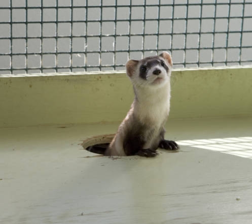 The black-footed Ferret is found in short or middle grass prairies. It often makes its homes in abandoned prairie dog burrows.