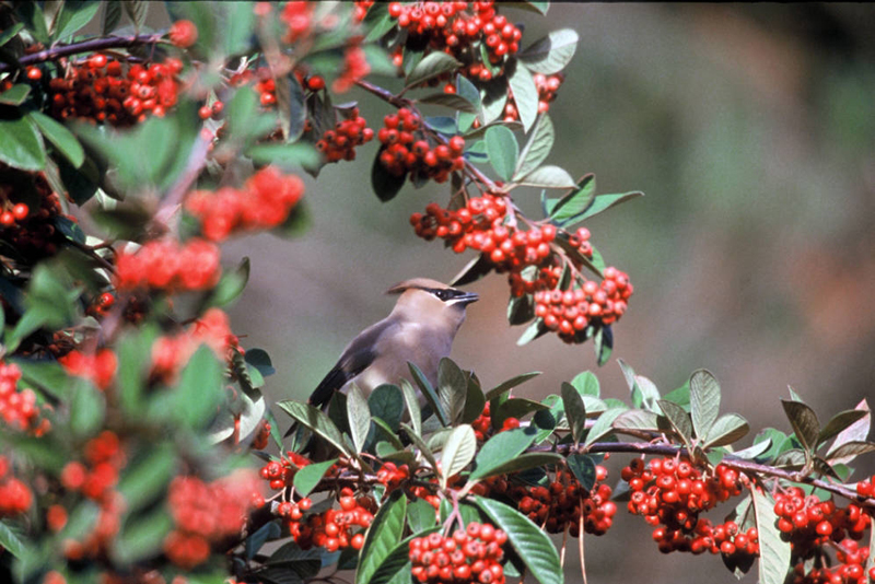 Cedar WaxwingThe cedar waxwing is mostly frugivorous.