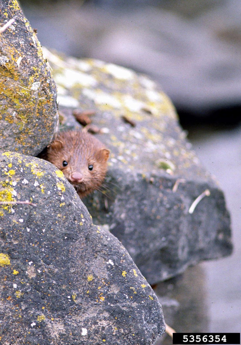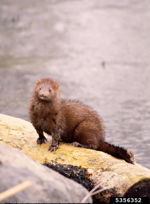 The American mink has brown to black fur with white fur on its chin and a little bit of white fur on its throat. Its fur is very soft and thick and covered with oily guard hairs that make the mink's coat waterproof. The mink has slightly webbed feet.