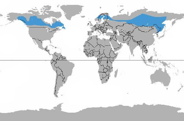 There are many animals that make the taiga their home. Many birds breed in the taiga in the spring and summer. As the snow melts in the spring, insects lay their eggs in the water. The insects attract a wide variety of species of birds to the taiga like the spruce grouse. In North America, mammals like pine martens, moose, wolves, fisher, Canada lynx, and grizzly bears are all found in the taiga. These mammals all have thick coats that protect them from the cold.