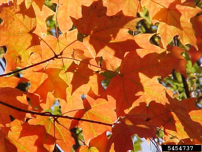 Sunlight has many different colors in it. Chlorophyll usually absorbs red and blue light from the sun and reflects green light. It's the green light reflecting that makes some leaves look green! In the fall, some plants stop producing chlorophyll and we see leaves change color. With the chlorophyll gone, the green light is not being reflected anymore!