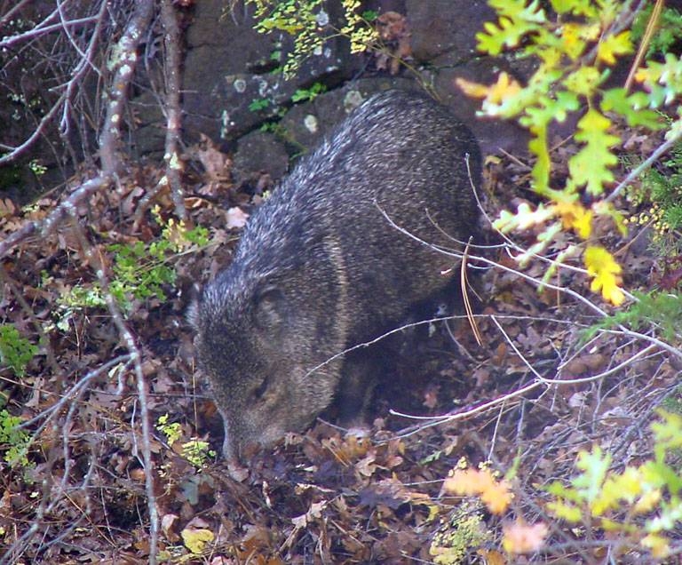The collared peccary lives in brushy desert areas and rocky canyons. It is usually found near a water source.