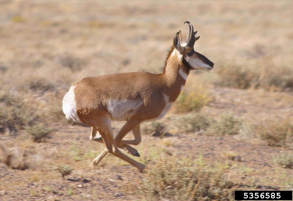 The pronghorn is the fastest animal in the Western Hemisphere. It can run at speeds of up to 60 miles per hour and it can run long distances at speeds of 30-40 miles per hour. It can make bounds of up to 20 feet when it is running. When the pronghorn runs, its mouth is open so it can breath in extra oxygen. Speed is important because the pronghorn lives in open areas, and there is no place to hide from a predator! It has to be able to run away!