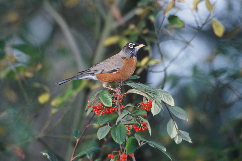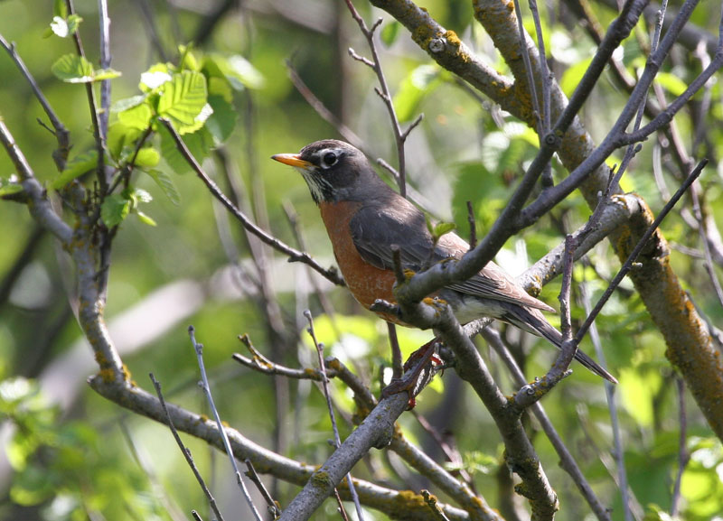 American RobinThe American robin lives in open woodlands, fields, gardens and yards.