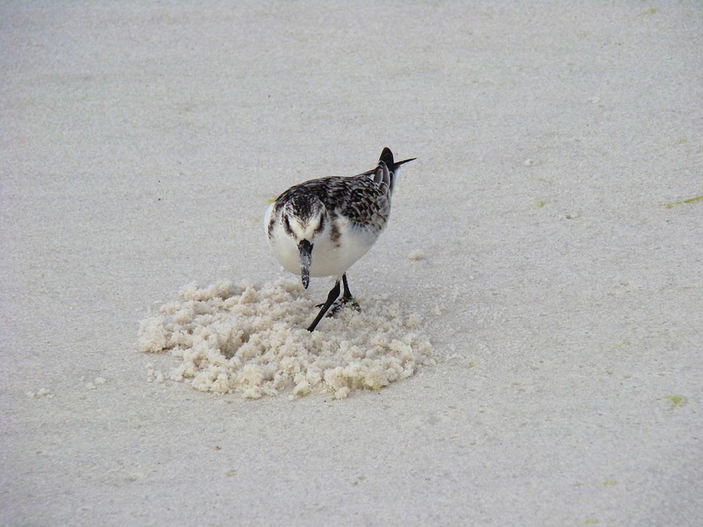 The sanderling eats crustaceans, mollusks, marine worms and insects.