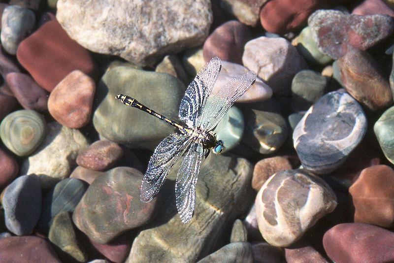 The splendid clubtail is usually found in clear, fast-moving, usually rocky rivers.