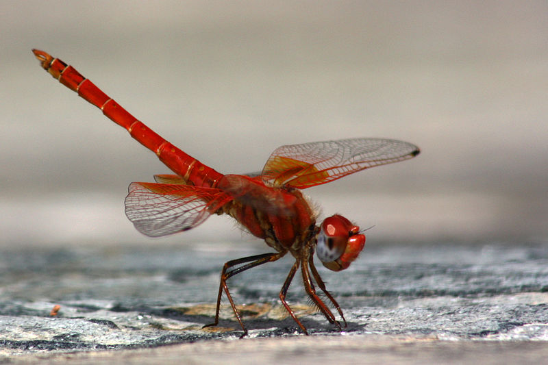 The broad scarlet is found in Africa, southern Europe, the Middle East, and west Asia. It is also known as the common scarlet-darter.