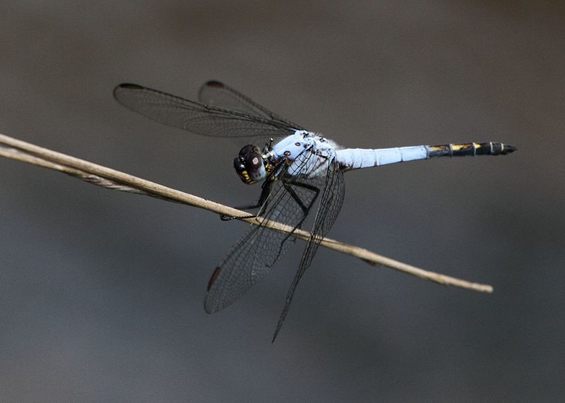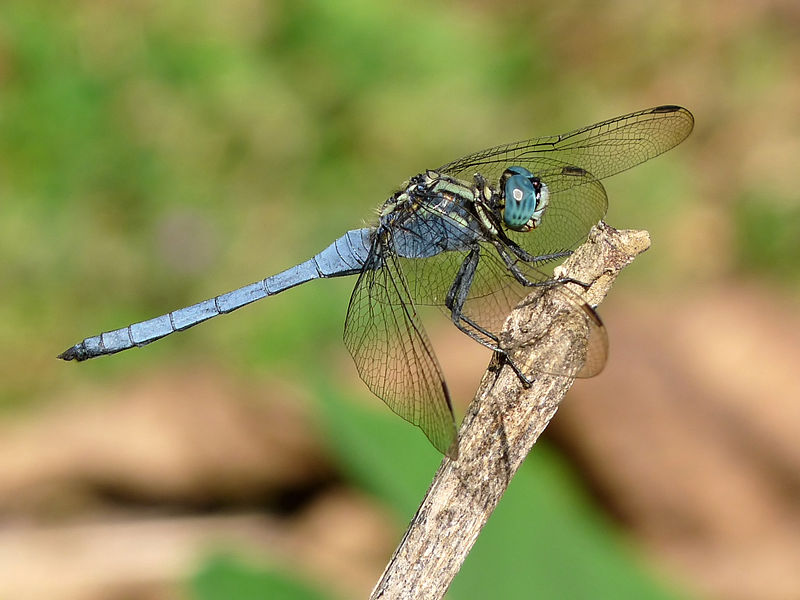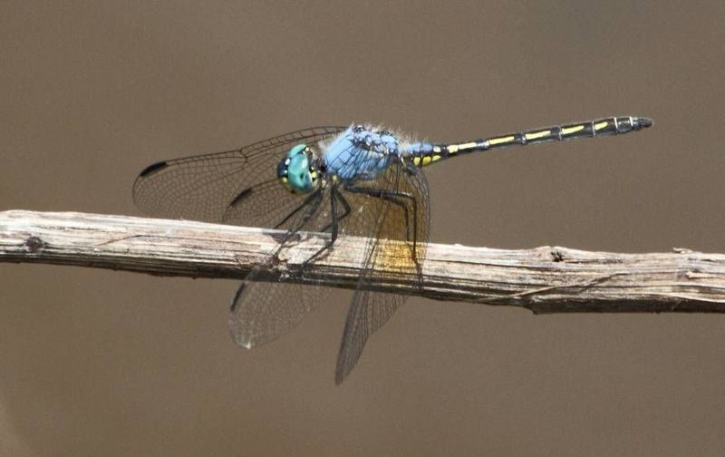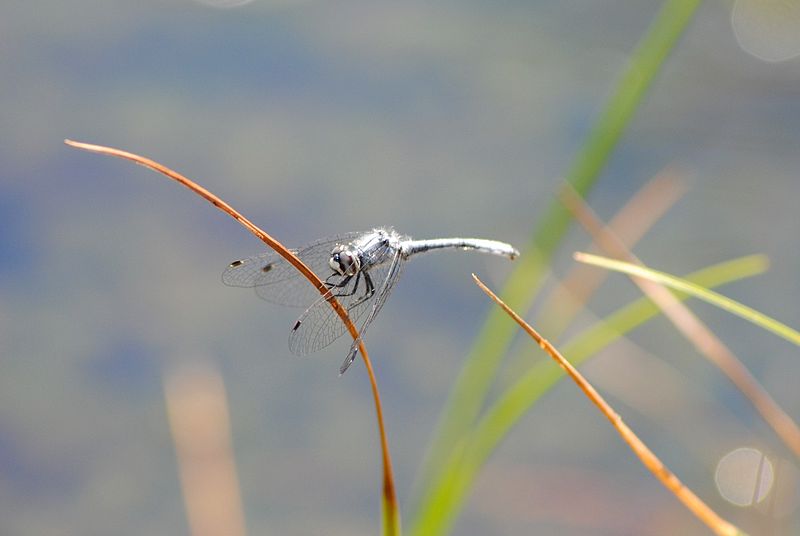 The blue dasher is found near ponds, lakes, marshes, ditches, and slow streams.