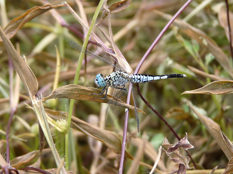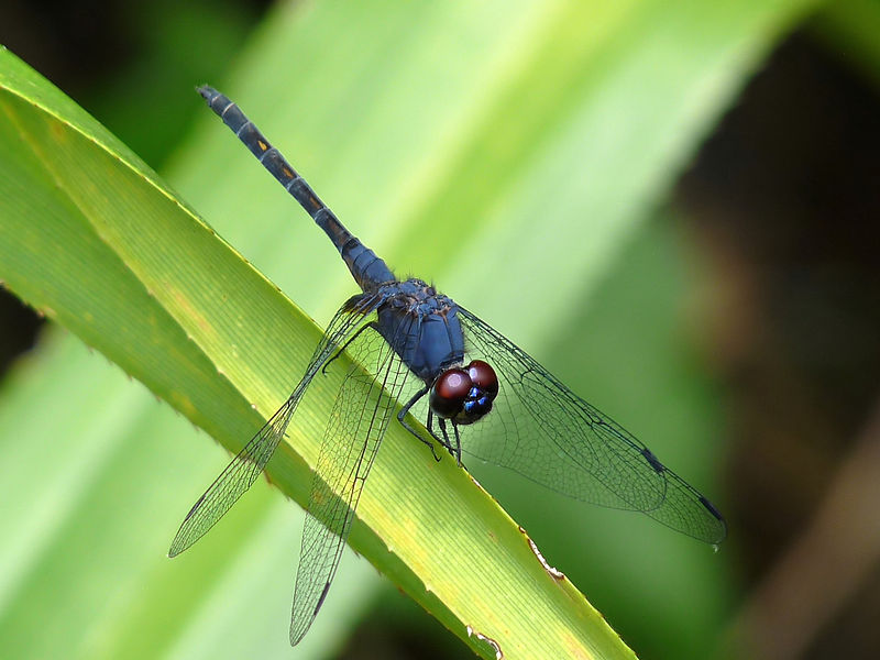 The spot-tailed dasher is found in near still or slow-moving water with emergent vegetation.