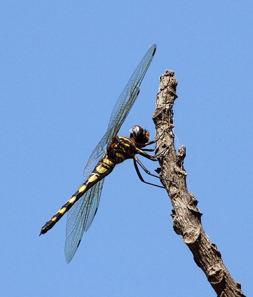 The pin-tailed pondhawk is found near marshy swamps, pools, lakes and streams with moderate currents.