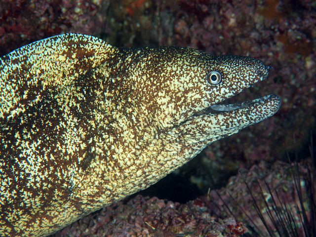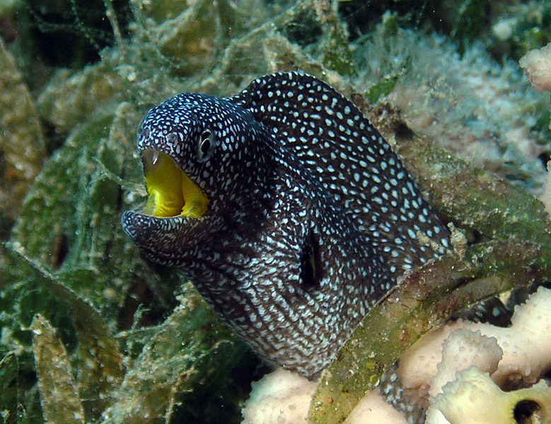 There are close to 200 species in this family of eels. Most species are found in shallow water among rocks and coral. and many species are active at night and spend the day hidden in the rock or coral crevices. Most species are found in tropical and sub-tropical marine environments, a few species can be found in brackish water, and a a handful of species are found in fresh water.