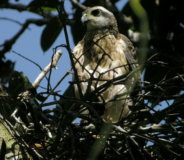 The Great Nicobar Serpent-eagle is a very small eagle with a black crest.