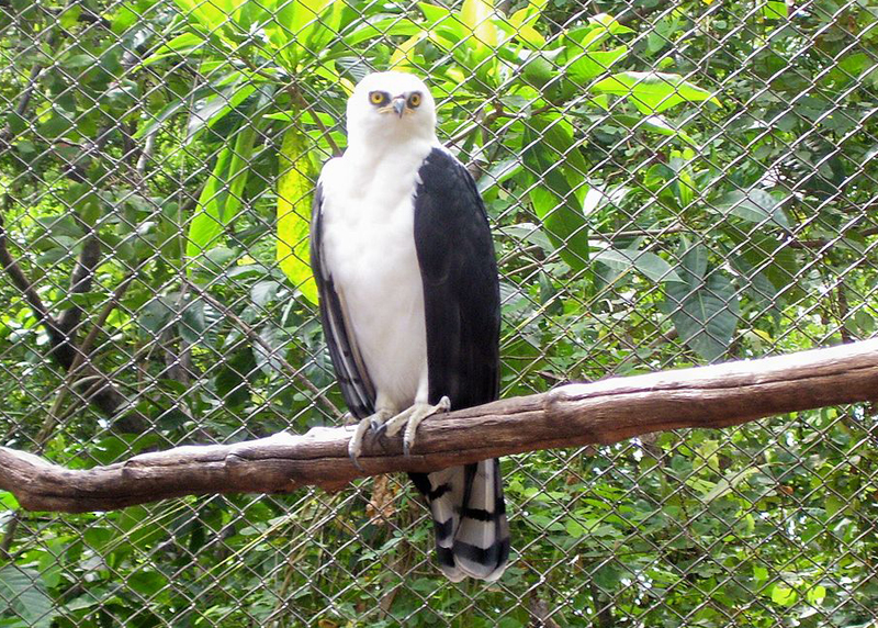 The solitary eagle is found in highland and foothill forests.