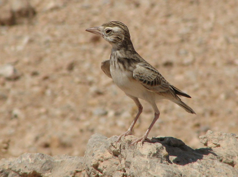 The desert Lark is found in deserts and semi-deserts from the Sahara east through the Arabian peninsula and the Middle East to Iran, Afghanistan, and Pakistan.