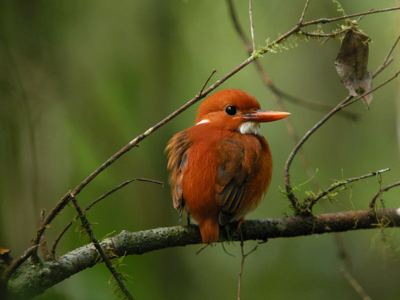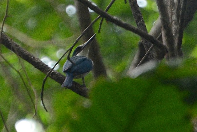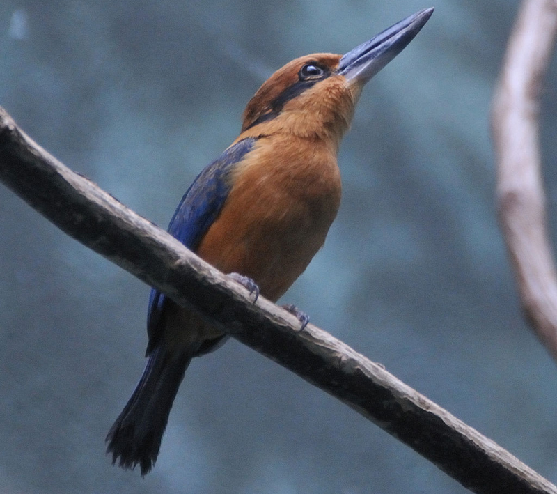 The rufous-collared kingfisher lives in subtropical or tropical moist lowland forests or montanes.