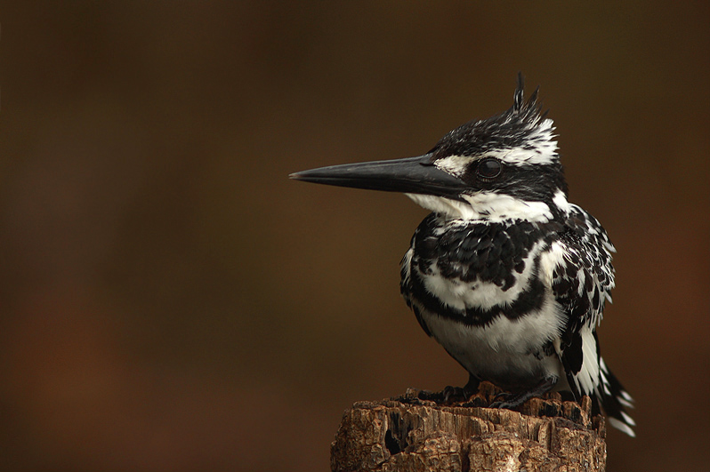 The pied kingfisher is the only kingfisher with all black and white plumage.