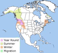 Range Barrow's goldeneye breeds in the western United States in the mountains from Alaska south to Oregon and Colorado. In the east, it breeds in Quebec and Labrador. It winters along the Pacific Coast from Alaska to California and along the Atlantic Coast from the Maritime Provinces in Canada south to Long Island, New York. Barrow's goldeneye is also found in Greenland and Iceland.