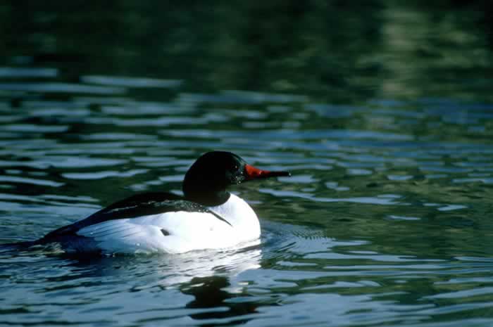 The common merganser dives for prey like