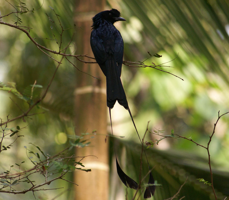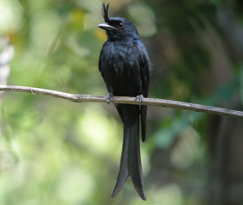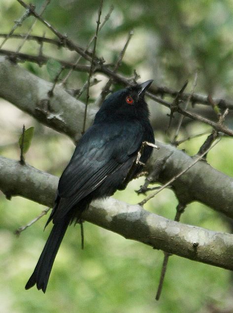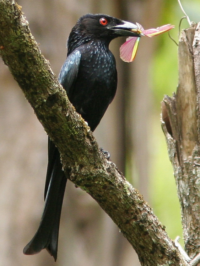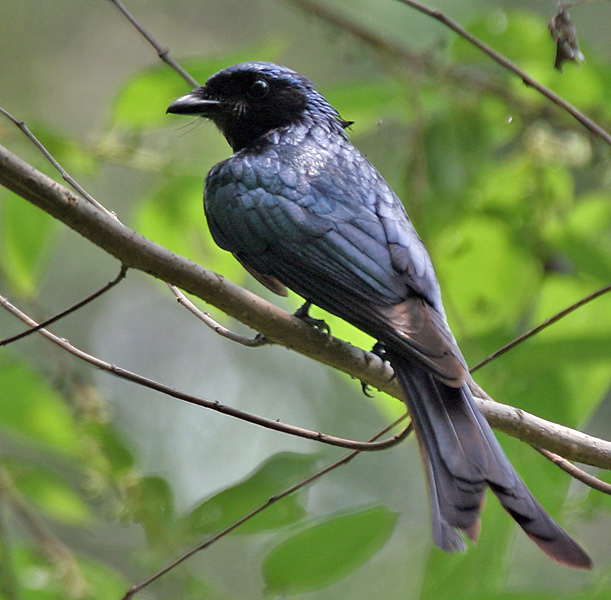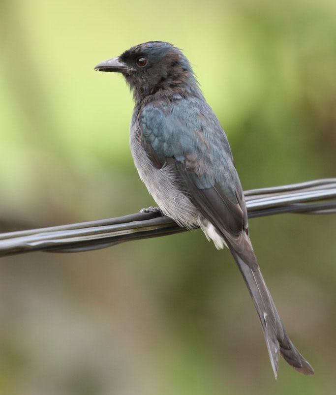 There are 23 species in this family. They are all found in the Southern Hemisphere. Drongos are 7-25 inches in length and are usually black or dark gray with a green or purplish sheen to their feathers.