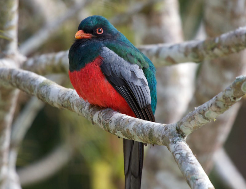 There are over 40 species and one family, trogonidae, in this order of colorful tropical birds. Trogons and quetzals are found in warm, forested areas in North America, Central and South America, Asia, and Africa.