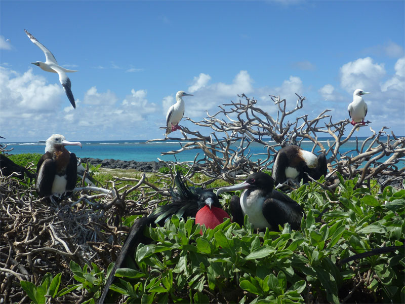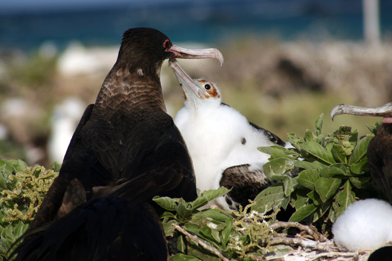 There are five species of large birds in this family. Frigatebirds are found in tropical and subtropical oceans. They spend most of their time on the open ocean, coming inland only to breed. They nest on ocean islands or on coastal areas.
