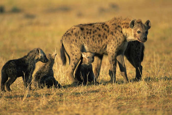 Spotted hyena packs are made up of up of 20 or more related individuals.