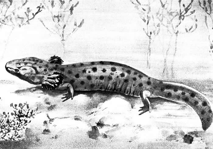 The mudpuppy never leaves the water.