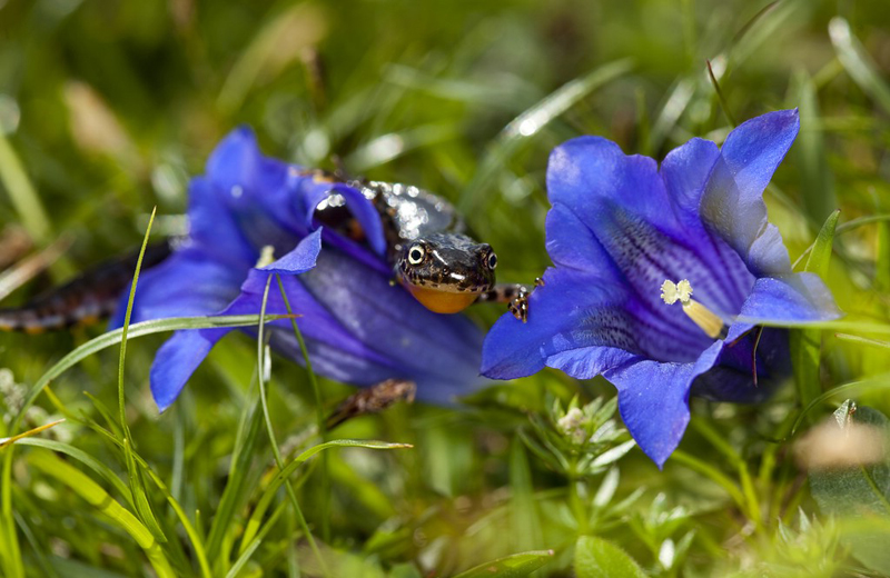 The sword-tailed newt is found in under leaf litter in both mountain and lowland forests. It also hunts for food in the water.