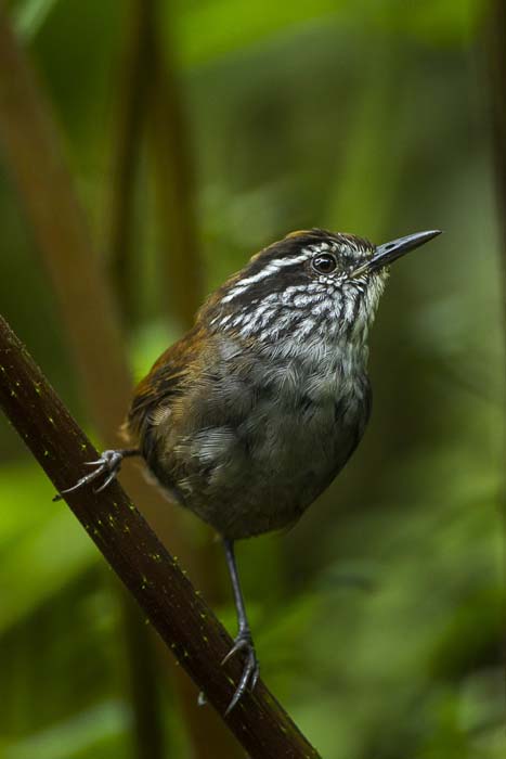 The stripe-throated wren is found in Colombia, Ecuador, and Panama.