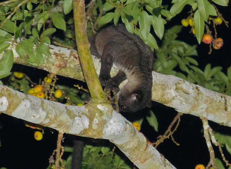 The large Indian civet eats fruit from a range of trees as well as rodents, insects and crabs.